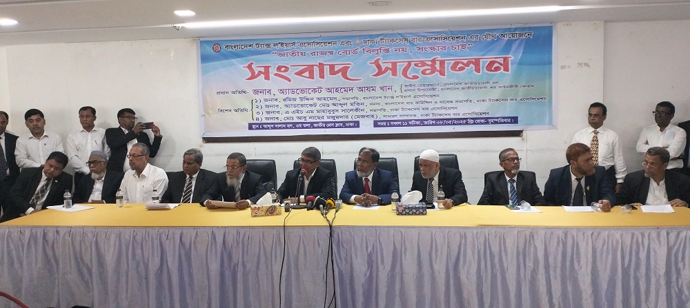 মো: সাইফুল আলম সরকার, ঢাকা: বাংলাদেশ ট্যাক্স ল’ইয়ার্স এসোসিয়েশন (বিটিএলএ) এবং ঢাকা ট্যাকসেস বার এসোসিয়েশন (ডিটিবিএ) এর মূল প্রতিপাদ্য বিষয় “জাতীয় রাজস্ব বোর্ড বিলুপ্তি নয়, সংস্কার চাই” নিয়ে এক সংবাদ সম্মেলন আয়োজন করে।
