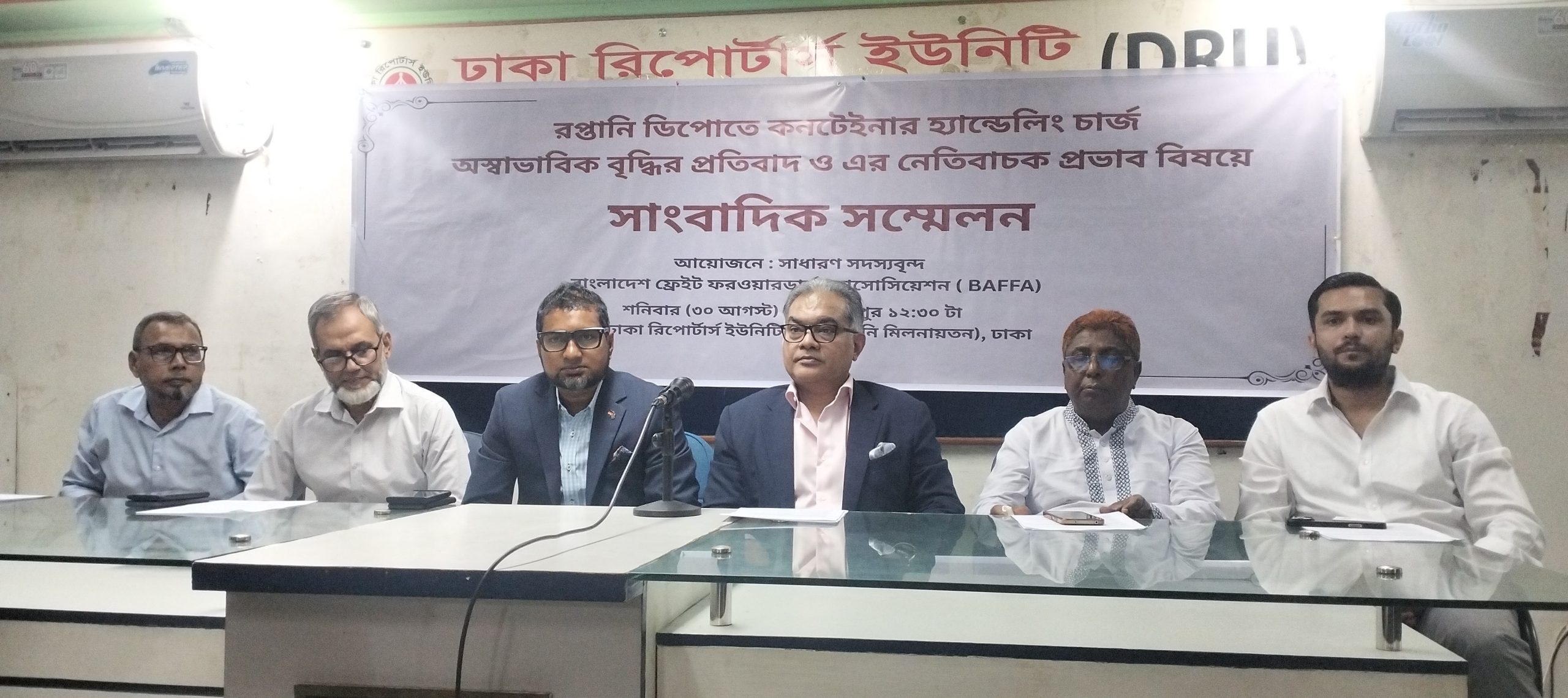প্রসঙ্গত, বর্তমানে বাফার কমিটি বিলুপ্ত করে প্রশাসক নিয়োগ দেয়া হয়েছে। সংবাদ সম্মেলনে বাফার সাধারণ সদস্যদের মধ্যে উপস্থিত ছিলেন, জনাব আবরারুল আলম, জনাব আদনান এমডি ইকবাল, জনাব মুনিম মাহফুজ, জনাব আনোয়ার হোসেন মিলন, জনাব আবুল হাসনাত, জনাব শামসুল হক, এবং জনাব তরিকুল ইসলাম তারেকসহ অন্যরা। জনাব আবরারুল আলম লিখিত বক্তব্য উপস্থাপন করেন। তিনি বলেন সাম্প্রতিক বৈশ্বিক অর্থনৈতিক মন্দা, দেশের বর্তমান অর্থনৈতিক ও রাজনৈতিক সংকট, মার্কিন যুক্তরাষ্ট্রের অতিরিক্ত ট্যারিফ প্রয়োগনীতি ও সার্বিক বাজার সংকটের এই ক্রান্তিলগ্নে Bangladesh Inland Container Depot Association (BICDA) কর্তৃক অযৌক্তিকভাবে রপ্তানি পণ্যের কনটেইনার হ্যান্ডেলিং চার্জ ২০–৫০ শতাংশ পর্যন্ত বৃদ্ধির ঘোষণা দিয়েছে, যা এই ক্রান্তিলগ্নে দেশের রপ্তানি অর্থনীতিতে একটি বড় উদ্বেগের সৃষ্টি করেছে।
