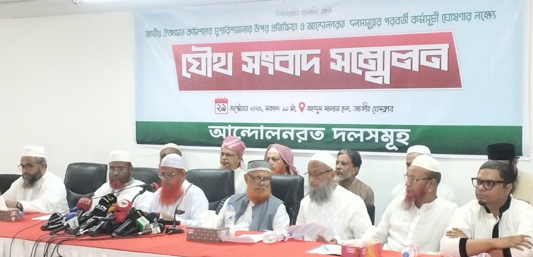 খাইরুল আলম, ঢাকা:  জাতীয় ঐকমত্য কমিশনের চূড়ান্ত সুপারিশমালার উপর প্রতিক্রিয়া ও অবিলম্বে জুলাই জাতীয় সনদ বাস্তবায়ন আদেশ জারি করে আগামী নভেম্বর মাসের মধ্যেই গণভোট আয়োজনসহ গণদাবিসমূহ আদায়ের লক্ষ্যে আন্দোলনরত রাজনৈতিক দলসমূহ সংবাদ সম্মেলন আয়োজন করে আজ ২৯ অক্টোবর ২০২৫ খ্রিস্টাব্দ রাজধানী ঢাকার জাতীয় প্রেসক্লাবের তৃতীয় তলার আব্দুস সালাম হলে।