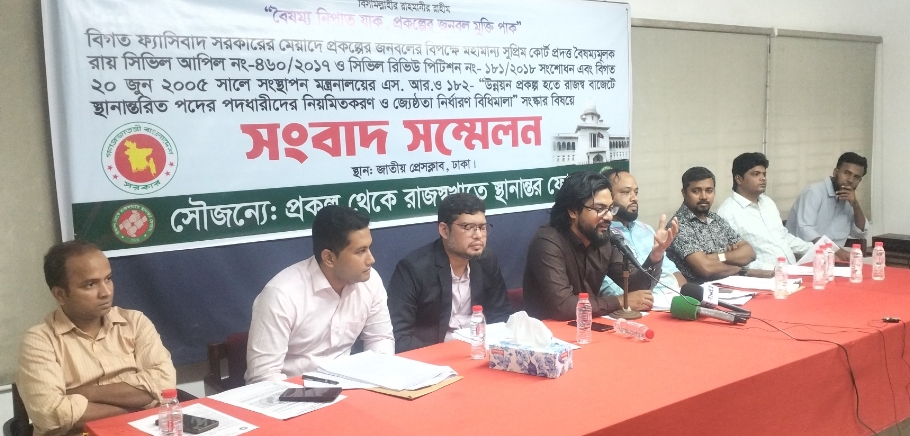 এছাড়াও বিগত ২০ জুন ২০০৫ সালে সংস্থাপন মন্ত্রণালয় কর্তৃক প্রকাশিত এস.আর.ও নং ১৮২-আইন/২০০৫/সম/বিধি-১/এস-৯/২০০০ গেজেটে ১৯৭২ সাল থেকে শুরু হয়ে ১৯৯৭ পর্যন্ত উন্নয়ন প্রকল্প হইতে রাজস্ব বাজেটে স্থানান্তরিত পদের পদধারীদের নিয়মিতকরণ ও জ্যেষ্ঠতা নির্ধারণ বিধিমালা, বিভিন্ন সময় জারি হওয়া প্রজ্ঞাপন এবং সরকারের নির্বাহী আদেশ অনুযায়ী বিভিন্ন সময়ে রাজস্বখাতে স্থানান্তর ও নিয়মিতকরণ হয়েছে। কিন্তু বিগত স্বৈরাচারী ফ্যাসিবাদী সরকার নিজেদের ব্যক্তিগত অবৈধ সুবিধা হাসিলের জন্য সাবেক এ্যাটর্নী জেনারেল মাহবুবে আলম স্যারের সময়কালে মহামান্য সুপ্রিম কোর্টের মাধ্যমে উন্নয়ন প্রকল্পের জনবলের জন্য বৈষম্যমূলক রায় ৪৬০/২০১৭ প্রদান করেন যা কিনা সকল উন্নয়ন প্রকল্পের জনবলের চাকরি রাজস্বখাতে স্থানান্তরে বাধা হয়ে দাঁড়ায়।