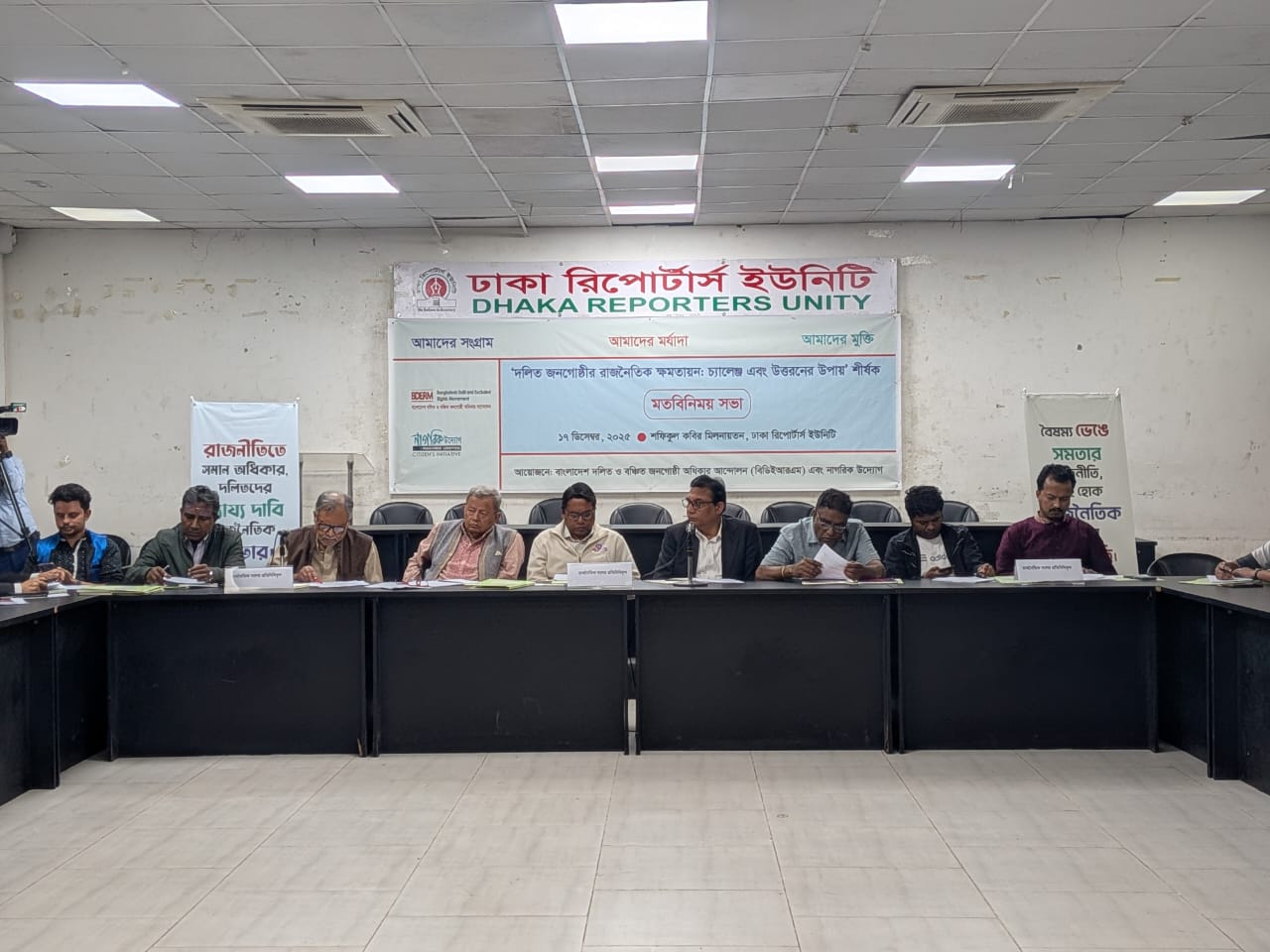 অভিজিৎ ব্যানার্জি, ঢাকা: আসন্ন ত্রয়োদশ জাতীয় সংসদ নির্বাচনে বাংলাদেশের রাজনৈতিক দলগুলোর নির্বাচনী ইশতেহারে সুনির্দিষ্টভাবে দলিত জনগোষ্ঠীর উন্নয়নের বিষয়গুলো অন্তর্ভূক্ত করা এবং তাদের রাজনৈতিক ক্ষমতায়নে রাজনৈতিক নেতৃবৃন্দ কী ভূমিকা রাখতে পারেন সে বিষয়ে আলোচনার উদ্দেশ্যে আজ ১৭ ডিসেম্বর, ২০২৫ (বুধবার), শফিকুল কবির মিলনায়তন, ঢাকা রিপোর্টার্স ইউনিটি, ঢাকা-এ বিডিইআরএম এবং নাগরিক উদ্যোগ এর আয়োজনে ‘দলিত জনগোষ্ঠীর রাজনৈতিক ক্ষমতায়ন: চ্যালেঞ্জ ও উত্তরনের উপায় শীর্ষক মতবিনিময় সভা অনুষ্ঠিত হয়। সভায় বাংলাদেশের বিভিন্ন রাজনৈতিক দলের নেতৃবৃন্দ, নাগরিক সংগঠনের প্রতিনিধিবৃন্দ, দলিত জনগোষ্ঠীর প্রতিনিধিবৃন্দ এবং গণমাধ্যমকর্মী উপস্থিত ছিলেন।