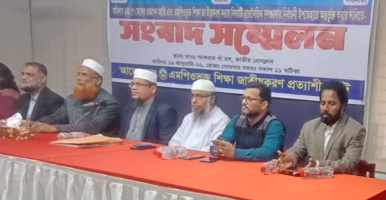 অভিজিৎ ব্যানার্জি, ঢাকা:   জাতীয় বেতন কমিশন-২০২৫ এর প্রস্তাবনার আলোকে অন্তর্বর্তীকালীন সরকারের সময়ের মধ্যেই ৯ম পে-স্কেলের প্রজ্ঞাপন জারি ও এমপিওভুক্ত শিক্ষা জাতীয়রণের বিষয়টি রাজনৈতিক দলগুলোর নির্বাচনী ইশতেহারে অন্তর্ভুক্ত করার দাবি জানিয়েছে এমপিওভুক্ত শিক্ষা জাতীয়করণ প্রত্যাশী জোট (এমপিওভুক্ত শিক্ষক কর্মচারী সংগঠনসমুহের জোট)।