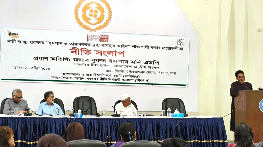 আজ শনিবার (৪ এপ্রিল,২০২৬) সিরডাপ ইন্টারন্যাশনাল সেন্টারে নারী স্বাস্থ্য সুরক্ষায় “ধূমপান ও তামাকজাত দ্রব্য ব্যবহার (নিয়ন্ত্রণ) আইন” শক্তিশালী করার প্রয়োজনীয়তা শীর্ষক একটি নীতি-সংলাপের আয়োজন করে তাবিনাজ (তামাক বিরোধী নারী জোট) ও উবিনীগ (উন্নয়ন বিকল্পের নীতি নির্ধারণী গবেষণা)। এই সভায় বক্তারা নারী ও শিশু স্বাস্থ্য সুরক্ষায় “ধূমপান ও তামাকজাত দ্রব্য ব্যাবহার (নিয়ন্ত্রণ) (সংশোধন) অধ্যাদেশ ২০২৫” কে কোনরূপ পরিবর্তন ছাড়া দ্রুত আইনে রূপান্তর করে তামাক নিয়ন্ত্রণ আইন শক্তিশালি করার দাবি জানান ।